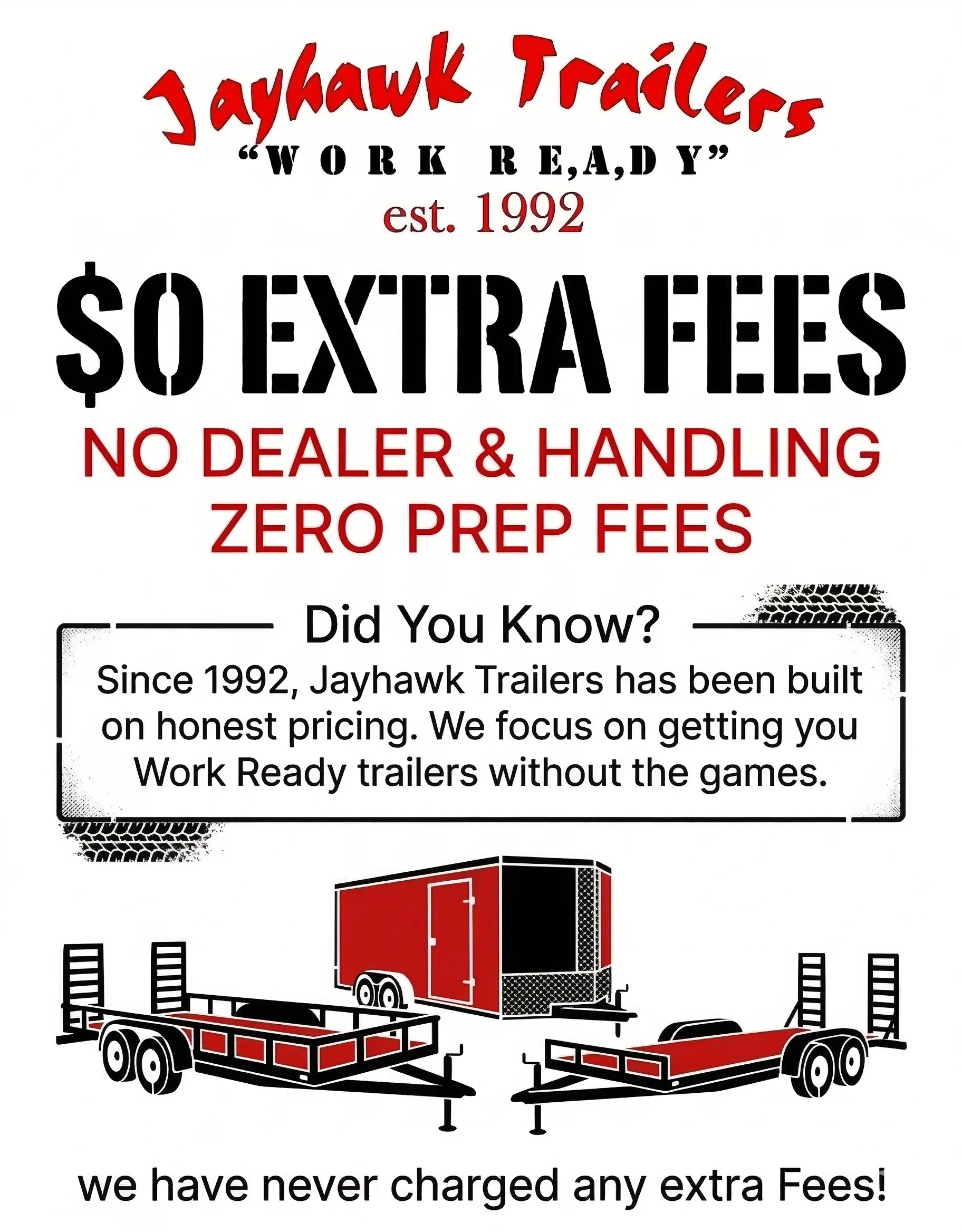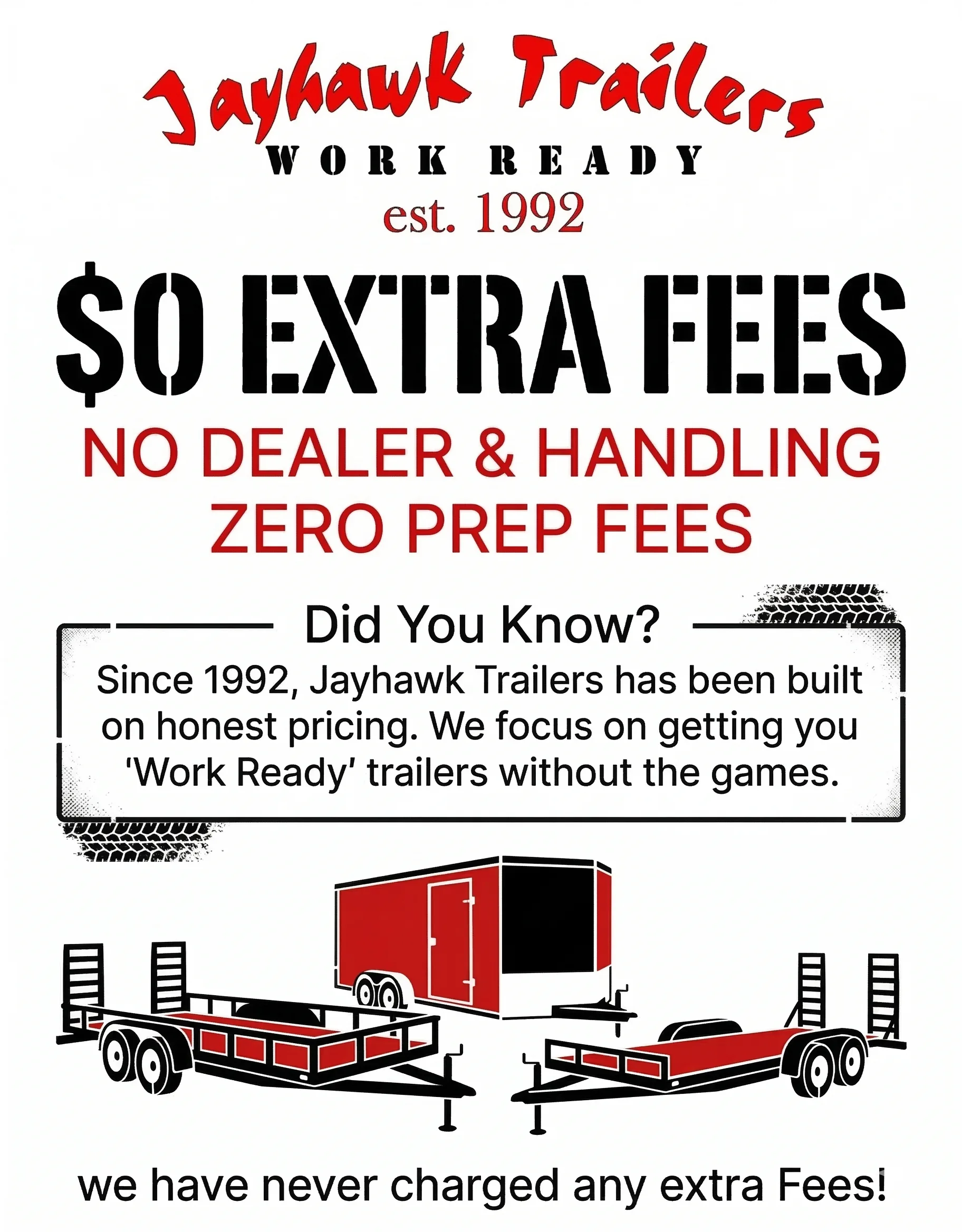 Jayhawk Trailers has been a trusted name in the Denver Metro Area since 1992. Over the past 30 years, we have established ourselves as one of the top trailer dealers in the State of Colorado, all while remaining a family-owned and operated business.